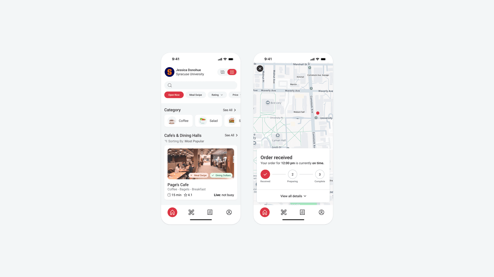 Delivering an on-campus food ordering experience that streamlines ordering and meal-plan payments for college students.